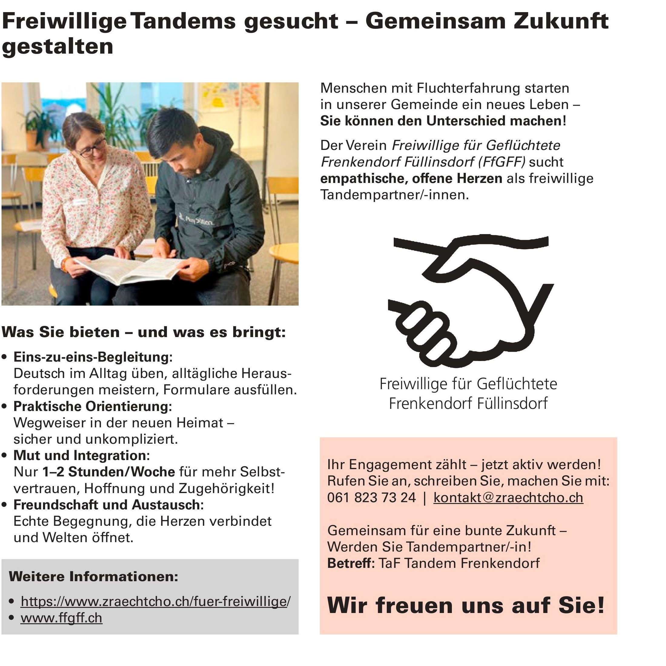Für den Verein Freiwillige für Geflüchtete Frenkendorf Füllinsdorf